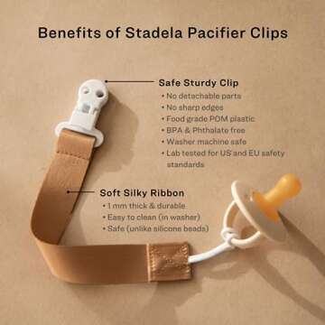 Imagine the peace-of-mind knowing your baby's pacifier is safe, within reach, and stylishly presented! The Stadela Pacifier Clips not only enhance your baby's experience but also elevate every outing with a touch of flair that parents will appreciate. Combining practicality with aesthetics, these clips make your parenting journey a little easier, and a lot more stylish.