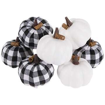 Compared to traditional glass or ceramic decorations, these foam pumpkins are lightweight, less prone to breakage, and easy to store. Unlike other pumpkin sets, the buffalo plaid and gingham fabric offers unique and inviting aesthetics that stand out in your fall decor, providing a cozy and inviting atmosphere that welcomes guests.