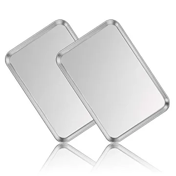 Show moreTransform your baking experience with the exceptional Stainless Steel Baking Sheet Set of 2 by Deedro. Crafted from premium 18/0 (430) stainless steel, these baking sheets offer a non-toxic alternative to traditional aluminum pans, ensuring that no harmful substances interfere with your culinary creations. Their thoughtfully engineered design features deep sides that prevent spills while roasting, keeping your oven clean and maintaining a tidy kitchen.