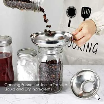Stainless Steel Canning Funnel, Wide Mouth Jar Funnel With Handle for Wide and Regular Mouth Jars, Food Grade Metal Jam Funnel, 5.5-Inch Large Kitchen Funnels by HOXHA