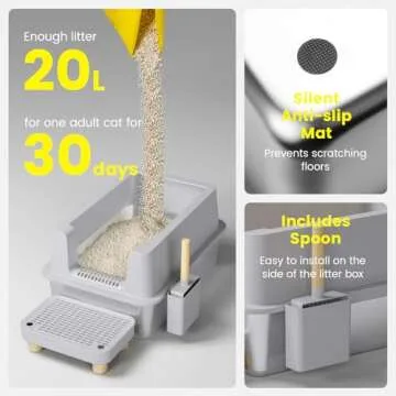 Stainless Steel Cat Litter Box - Enclosed Litter Box with Lid XL Extra Large Metal Litter Box for Big Cats, High Sided Kitty Litter Box Anti-Leakage, Easy Cleaning, Non-Sticky, Included Spoon & Aisle