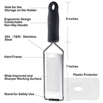 Stainless Steel Cheese Grater, Ergonomic Soft Handle Lemon Ginger Potato Zester with Plastic Cover