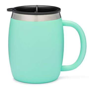 Stainless Steel Coffee Mugs with Lids - 14 Oz Double Walled Insulated Coffee Beer Mugs - Set of 2 - Mint - Best Value - BPA Free Healthy Choice - Shatterproof and Spill Resistant - By Avito