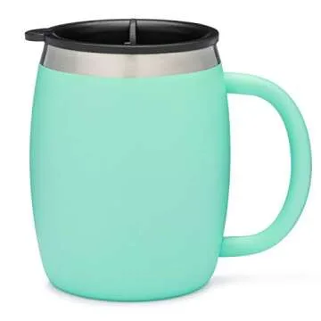 Avito Stainless Steel Coffee Mugs with Lids - Stylish 14 Oz Insulated Set of 2 in Mint