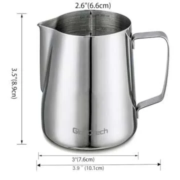 Show more If you're passionate about creating exquisite coffee beverages in the comfort of your own home, this incredible milk frothing pitcher is your new best friend. With a professional cafe-quality design, this 12 oz (350ml) pitcher is perfect for crafting beautiful lattes, cappuccinos, and creamy hot chocolate, without any waste of milk.