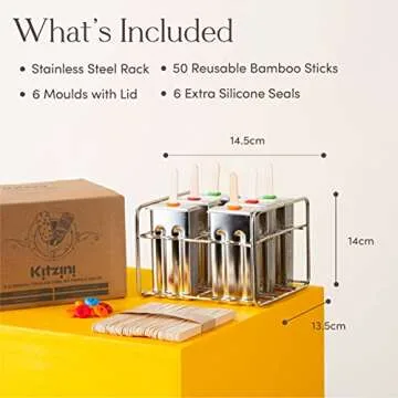 Stainless Steel Popsicle Maker. Kids Easy Popsicles Molds Set. 6 BPA Free Square Edge Popsicle Molds + Ice Pop Mold Tray & Leak-Proof Silicone Seals. Fast Freezing Ice Cream Popcical Makers by Kitzini