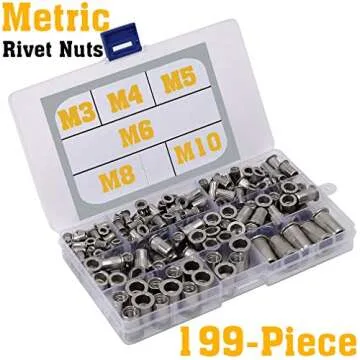 Show moreDiscover the ultimate fastening solution with the 199-Piece Stainless Steel Rivnuts Kit, a meticulously curated assortment of rivet nuts designed for strength, durability, and versatility. This comprehensive kit features an array of sizes: 55 pieces of M3, 50 pieces of M4, 35 pieces of M5, 40 pieces of M6, 12 pieces of M8, and 7 pieces of M10, catering to your most demanding fastening needs. Constructed from high-quality austenitic stainless steel, these rivet nuts boast natural corrosion resistance, ensuring their longevity and reliability across numerous applications including automotive, marine, furniture, and machinery projects.
