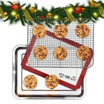 Stainless Steel Sheet Pan 15.5 x 11.5 inch Cooling Rack & Silicone Baking Mat Set - Extra Durable Cookie Sheet, Oven Safe non-toxic Heavy Duty Bake ware. for Roasting Bacon, Vegetables, and Cake.
