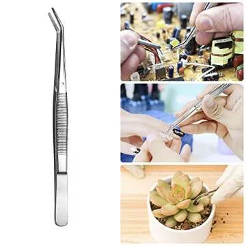 Show more Introducing the ultimate multi-purpose tool that every household should have at hand – the 304 stainless steel tweezers! Perfectly engineered for durability and flexibility, these tweezers resist corrosion ensuring they remain a reliable assistant in all your tasks. Whether you are engaged in a hobby or undertaking household repair tasks, these tweezers cater to a wide variety of needs including cleaning fish tanks, performing electrical repairs, crafting, or feeding small animals.