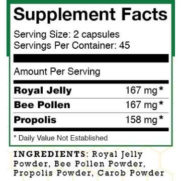 Show moreExperience the potent blend of nature's finest with Stakich 500 mg Capsules, formulated with Royal Jelly, Bee Pollen, and Propolis, all sourced from the pristine hives of dedicated beekeepers. These esteemed ingredients are rich in vitamins, minerals, and antioxidants that contribute to overall well-being, enhancing your energy levels, immune support, and vitality. Each capsule contains 500 mg of this unique blend designed for daily consumption and optimized for maximum absorption, while also being easy to incorporate into your daily routine. With 90 capsules in each bottle, you can enjoy the benefits of these bee-derived superfoods consistently and conveniently.