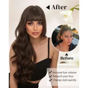 Stamped Glorious Brown Wig with Bangs for Women Long Wavy Curly Wigs Synthetic Hair Wig for Girls Party Daily Use