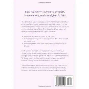 Show moreDiscover your strength and resilience with the "Stand Firm: How to Fight for Your Faith with the Armor of God Bible Study." This engaging Bible study guides you through the powerful concept of spiritual armor, as described in Ephesians 6:10-18. Each segment invites you to explore your faith, challenge your doubts, and embrace your belief through biblical lessons. Whether you are starting your spiritual journey or looking to deepen your understanding, this study is designed to empower you. You will find practical applications for everyday situations, enabling you to fight against spiritual battles effectively and to stand united in faith.