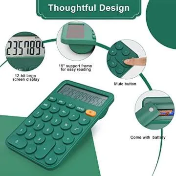 Show moreIntroducing our Standard Calculator, a perfect blend of functionality and style! Measuring 6.2 by 4.2 inches and weighing only 122g, this calculator is designed for easy portability—ideal for slipping into your pocket or bag. The large display features a 12-digit LCD screen with a vertical back and a convenient 15-degree tilt angle, ensuring readability in any setting. With an automatic sleep function that extends battery life, you can count on this calculator for up to two years of use with ease! Included is a AAA battery, so your calculator is ready to work straight out of the box.