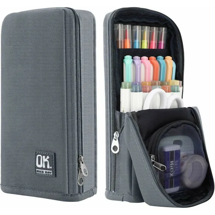 Show moreDiscover the ultimate blend of organization and style with the Standing Pencil Case Large Capacity Pen Bag. This multi-layer pencil pouch not only serves as a functional stationery organizer but also as a chic desk accessory. Crafted from durable, high-quality polyester, it ensures long-lasting use while maintaining a sleek, modern appearance. The magnetic closure provides a unique touch, transforming the pencil holder into a sturdy stand-up case. This gray storage box is designed to accommodate a substantial amount of stationery, making it perfect for individuals who appreciate both form and function in their organizational tools.