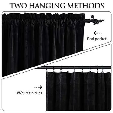 StangH Black Velvet Curtains 96 inches Long - Blackout Thermal Insulated Drapes Energy Smart Repel Summer Hot & Winter Cold Privacy Panels for Home Theater, Black, 52 x 96 inches, 2 Pcs