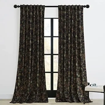 Show more Create a luxurious atmosphere in your home with the magnificent StangH Black Velvet Curtains. Measuring an elegant 52 inches wide by 96 inches long, these curtains combine aesthetic appeal and practical functionality. The beautifully rich floral and bronzed foliage design set against a deep black background not only transforms any room but also adds a feeling of sophistication and elegance. Crafted by a leading home decor brand, they're designed to enhance a variety of interior styles—from modern minimalism to classic elegance—making them a versatile addition to your decor.