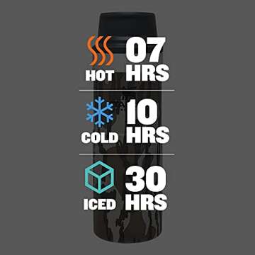 It keeps drinks hot for up to 7 hours, cold for 10 hours, and iced for up to 30 hours.