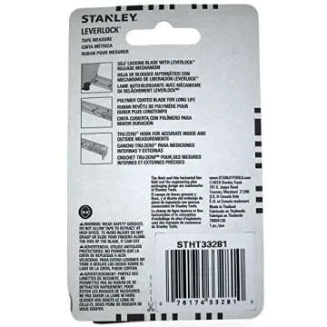 Stanley 33-281 Leverlock Fractional Tape Rule with Magnetic Tip, 1-Inch X 25-Feet