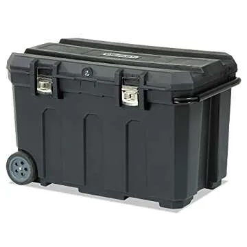 Large, nickel-plated metal latches come with the tool box organizers and storage.