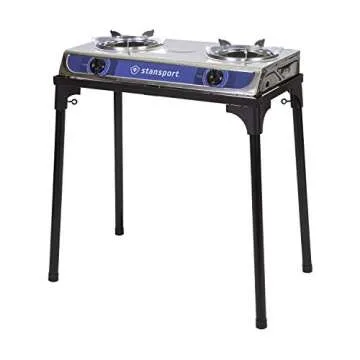 Show moreIntroducing the Stansport Gourmet Propane Stove with Stand, the ultimate outdoor cooking partner for chefs and adventurers alike! This two-burner gourmet stainless steel outdoor stove is designed for those who appreciate high-quality cooking experiences, even in the great outdoors. With its impressive 30,000 BTU cast burners featuring a precise rotary flame control, this stove allows you to prepare gourmet meals just like you would in your kitchen at home. Whether you’re tailgating, camping, or hosting an outdoor party, this stove ensures you can cook with ease and consistency.