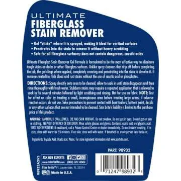 Show moreThe Star Brite Fiberglass Stain Remover is a revolutionary cleaning solution that transforms your cleaning routine. Engineered to effectively combat tough stains, this gel spray formula excels in removing rust, dried fish blood, and stubborn leaf stains from fiberglass and painted surfaces. Its unique gel consistency allows it to cling to vertical surfaces, providing superior stain penetration without the hassle of run-offs and drips. Say goodbye to unsightly waterline stains that mar the beauty of your boat hulls or plastic surfaces; our stain remover virtually eliminates 'yellowing' tannic stains with ease.