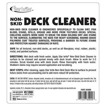 The STAR BRITE Boat Deck Cleaner is incredibly easy to use. To achieve stunning results, simply wet the deck, apply the cleaner, give it a light scrub, and rinse—simple as that! You will enjoy the lasting benefits each time you use it, with just one gallon lasting for several cleaning sessions. Plus, trust in a brand with over four decades of expertise in marine and outdoor cleaning products.