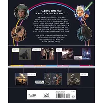 Show moreUnleash the power of the Star Wars universe with Star Wars Timelines, an immersive and beautifully illustrated guide that captivates both die-hard fans and casual viewers alike. This meticulously crafted book transports you through the multi-faceted storylines of the Star Wars saga, providing a comprehensive overview of the events and characters that have defined an iconic franchise for decades. With intricate visuals, deep analyses, and engaging narrative explanations, every page invites you to rediscover the beloved galaxy far, far away.