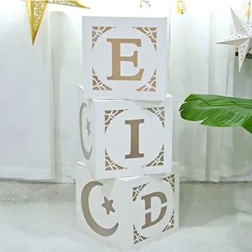 Show moreStaraise Eid Mubarak Decorations are the perfect way to elevate your home decor during the festive Ramadan and Eid celebrations. This set includes three elegant hollow boxes, each beautifully designed with intricate cutout patterns of stars, moons, and the word "EID". Measuring 12" x 12" x 12", these decorative boxes are not only visually appealing but also versatile—ideal for adding a personal touch with fairy lights or other embellishments. Made from premium-quality, eco-friendly materials, these boxes are light yet durable, ensuring they stand out during your festive gatherings with vibrant colors that bathe your space in warmth.