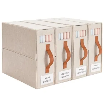 Show moreIntroducing the StarAneer Bed Sheet Organizer 4 Pack, the ultimate solution for keeping your sheets neatly organized and easily accessible! Made with high-quality linen, these durable storage boxes combine functionality with style, ensuring that your linens are well-protected and visually appealing. The foldable design provides flexibility, enabling you to use them not only as closet organizers but also for under-bed storage, perfect for optimizing space in your bedroom or dorm. With an elegant beige colorway, they complement any room decor while making seasonal changes a breeze. Each box is designed to hold your sheets, pillowcases, and duvet covers with ease, making it a necessity for every household.