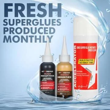 Starbond Premium Grade Cyanoacrylate (CA) Super Glue, Black (2 oz) and Brown (2 oz) Medium-Thick Viscosity Knot Filler and Aerosol Accelerator (6 oz) Bundle for Woodworking, Woodturning, Carpentry