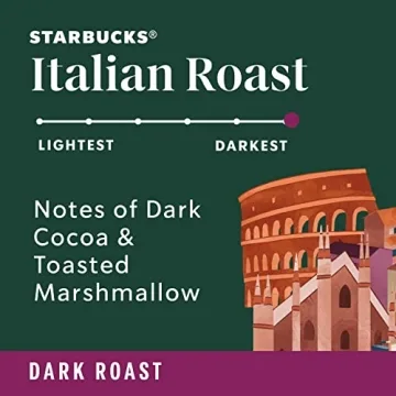 The Starbucks Italian Roast is a dark roast with tasting notes of dark cocoa and toasted marshmallow.