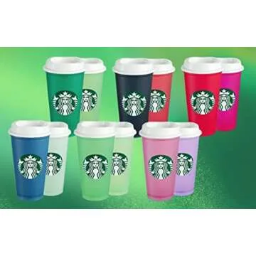 Starbucks Plastic Holiday 2021 Limited Color Changing Reusable Hot Cups with Lids - Set of 6