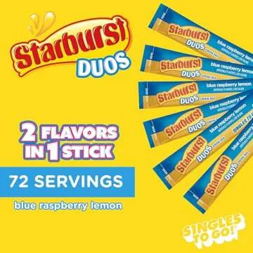Show moreRevitalize your hydration routine with the Starburst Duos Singles To Go Powdered Drink Mix in the tantalizing flavor of Blue Raspberry Lemon! Each packet is brimming with a fruity burst of flavor that transforms ordinary water into a delectable beverage. Whether you’re at the gym, traveling, or simply at home, these convenient drink mixes allow you to indulge in the refreshing taste of Starburst anytime, anywhere. Each box contains 6 individual sticks, and with a total of 12 boxes, you'll never run out of flavor with 72 servings right at your fingertips!