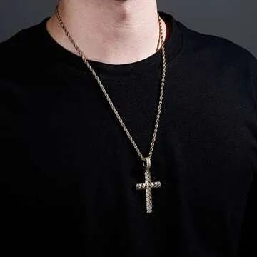 STARCHENIE Men's Cross Necklace Brass Gold Plating Pendant Cubic Zirconia Crucifix Jewelry 24'' Rope Chain-B:Gold
