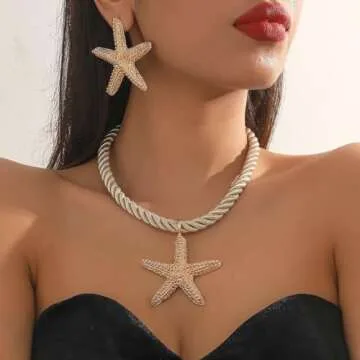 Starfish Earrings Gold Starfish Necklace Beach Jewelry for Women Gold Charm Necklace Trendy Jewelry 2024 Summer Dresses Outfits Accessories