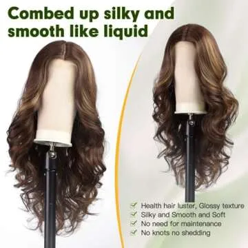 starluck Brunette Synthetic Lace Front Wig Jet Black Water Wave Wigs for Women 24 Inch