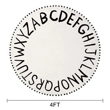Show moreTransform your child's playtime with the enchanting STARUIA Black Round Rug. Measuring 47 inches in diameter, this delightful rug is not only a stylish addition to any nursery or playroom but also serves as a fantastic educational tool. Adorned with playful alphabet letters and charming pom poms, it enhances your baby's letter recognition skills while providing a comfy space for endless fun and learning. It's the perfect blend of style and functionality, creating an inviting atmosphere for your child's imaginative adventures.