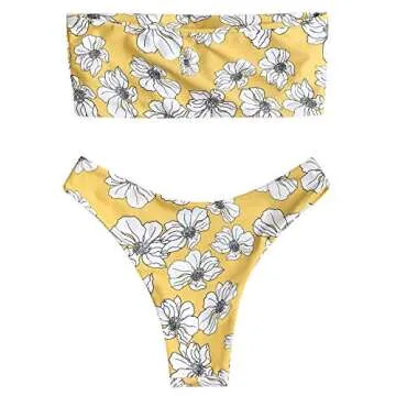StarVnc Women's Floral Bandeau Bikini Swimsuits High Waist Strapless Two Pieces Bathing Suit Beacwear (S, Yellow)