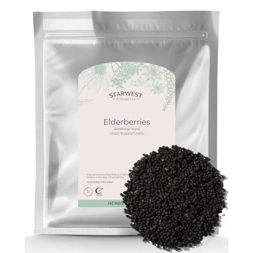 Show more Introducing our Starwest Botanicals Whole Wildcrafted Elderberries, available in a generous 1-pound package, perfect for your health-focused culinary adventures. These dried elderberries are scientifically known as Sambucus nigra, celebrated for their impressive array of health benefits. Sourced exclusively from sustainable, family-owned farms, each batch of berries supports local agriculture while ensuring the highest quality. Enjoy the peace of mind knowing you are choosing a product that not only enhances your well-being but also contributes positively to the environment.