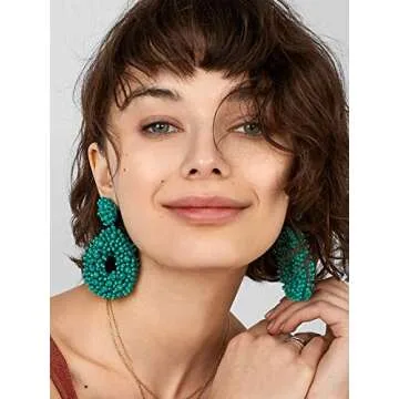 Statement Drop Earrings - Bohemian Beaded Teardrop Dangle Earrings Gift for Women