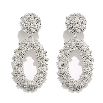 Statement Drop Earrings For Women Boho Textured Dangle Earrings Gorgeous Geometric Oval Raised Earrings (silver)