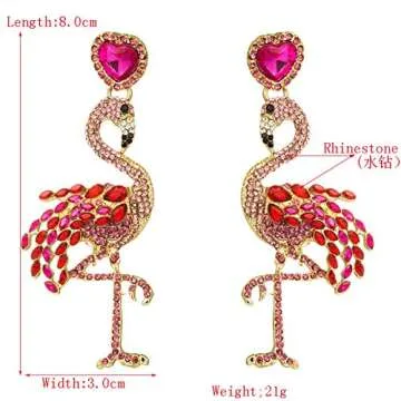 Statement Rhinestone Beaded Drop Earrings Dainty Crystal Flamingo Dangle Earrings Rainbow Animal Beaded Drop Stub Earrings Fashion Cute Flamingos Earrings Tassel Drop Earrings for Women