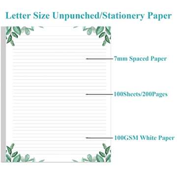 Stationery Lined Paper, Letter Size Unpunched Ruled Filler Paper, 100Sheets / 200Pages Loose-Leaf Line Paper, 100gsm White Paper, 8.5'' x 11'', Leaf