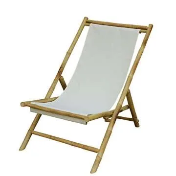 Statra White Folding Bamboo Relax Sling Chair Canvas, 33" H x 24" W x 37" D