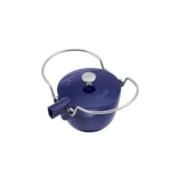 Show moreIntroducing the Staub Cast Iron 1-qt Round Tea Kettle in a stunning Dark Blue finish, meticulously crafted in France. This gorgeous kettle isn't just a pretty face; it combines style and functionality, making it an essential addition to any kitchen. With its robust cast iron construction, this kettle is designed to last for generations, ensuring you can enjoy your favorite hot beverages for years to come. The beautiful enamel coating not only enhances its aesthetic appeal but also simplifies cleaning and maintenance, allowing you to focus on what truly matters – enjoying your tea.