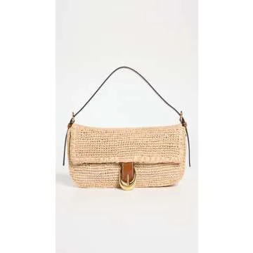 STAUD Women's Harlow Raffia Shoulder Bag, Natural/Tan, One Size