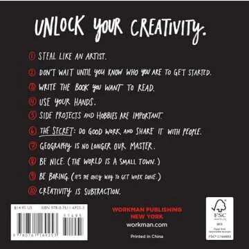 Show moreIf you ever felt stuck in your creative pursuits or unsure of where to start, then "Steal Like an Artist: 10 Things Nobody Told You About Being Creative" by Austin Kleon is the book you need to unlock your potential. This engaging and insightful guide is designed to inspire anyone yearning for creative freedom—a powerful manifesto for the aspiring artist and thinker. In just 140 pages, Kleon not only shares fundamental truths about creativity but also presents them with humor and relatable wisdom that resonates with both seasoned creators and novices alike.