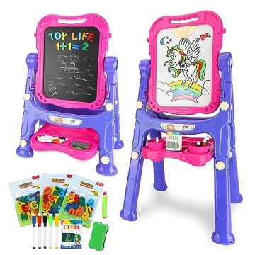 Show moreUnleash your child's creative potential with the STEAM Life 4-in-1 Art Easel, specifically designed for children aged 3 to 5. This exceptional art easel is a treasure trove of fun and learning with its double-sided feature: one side boasts a vibrant chalkboard for their imaginative doodles, while the opposite side features a magnetic dry erase board, perfect for engaging activities like drawing and writing. Included in this delightful set are magnetic numbers and letters, chalk, colorful markers, and an eraser, all aimed at stimulating your child's artistic flair as well as their early literacy and numeracy skills.