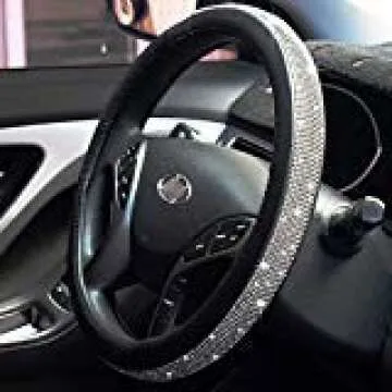 Steering Wheel Cover Bling Bling Rhinestones Crystals Car Handcraft Steering Wheel Covers Leather for Girls Black