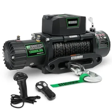 STEGODON Winch 13000 lb Winch 12V Electric Winch Synthetic Rope Winch Rough Country Winch with Hawse Fairlead,Wired Handle and Corded Control for Jeep Truck SUV